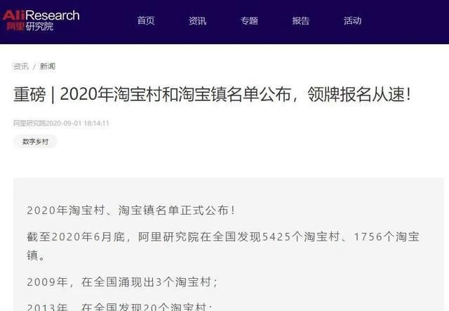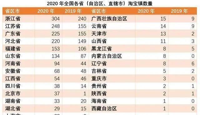 近日,阿里研究院公布了2020年淘宝村、淘宝镇名单。