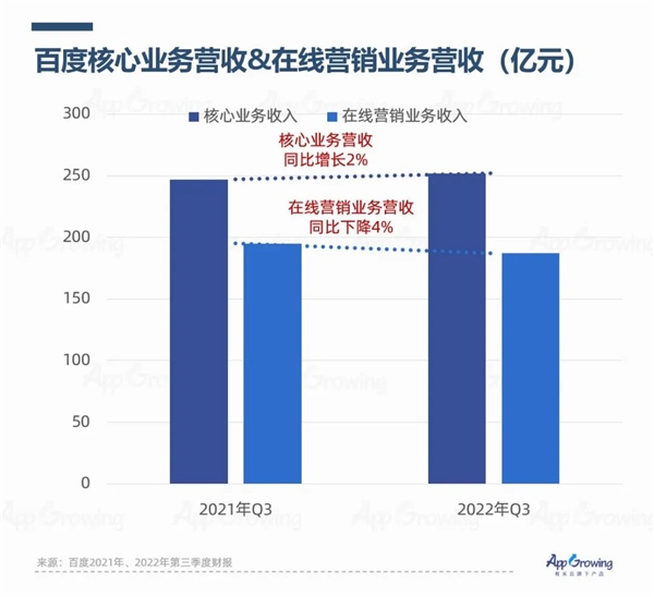 第三季度,百度实现营收325.4亿元,同比增长2%。其中,百度核心第三季度营收为252亿元,同比增长2%。其中第三季度的网络营销收入为187亿元,同比下降4%,较二季度改善10%。自今年以来大健康、零售、旅游、本地服务等行业广告需求下降,百度今年Q2网络营销收入同比下降了10%,此次Q3减幅明显改善。